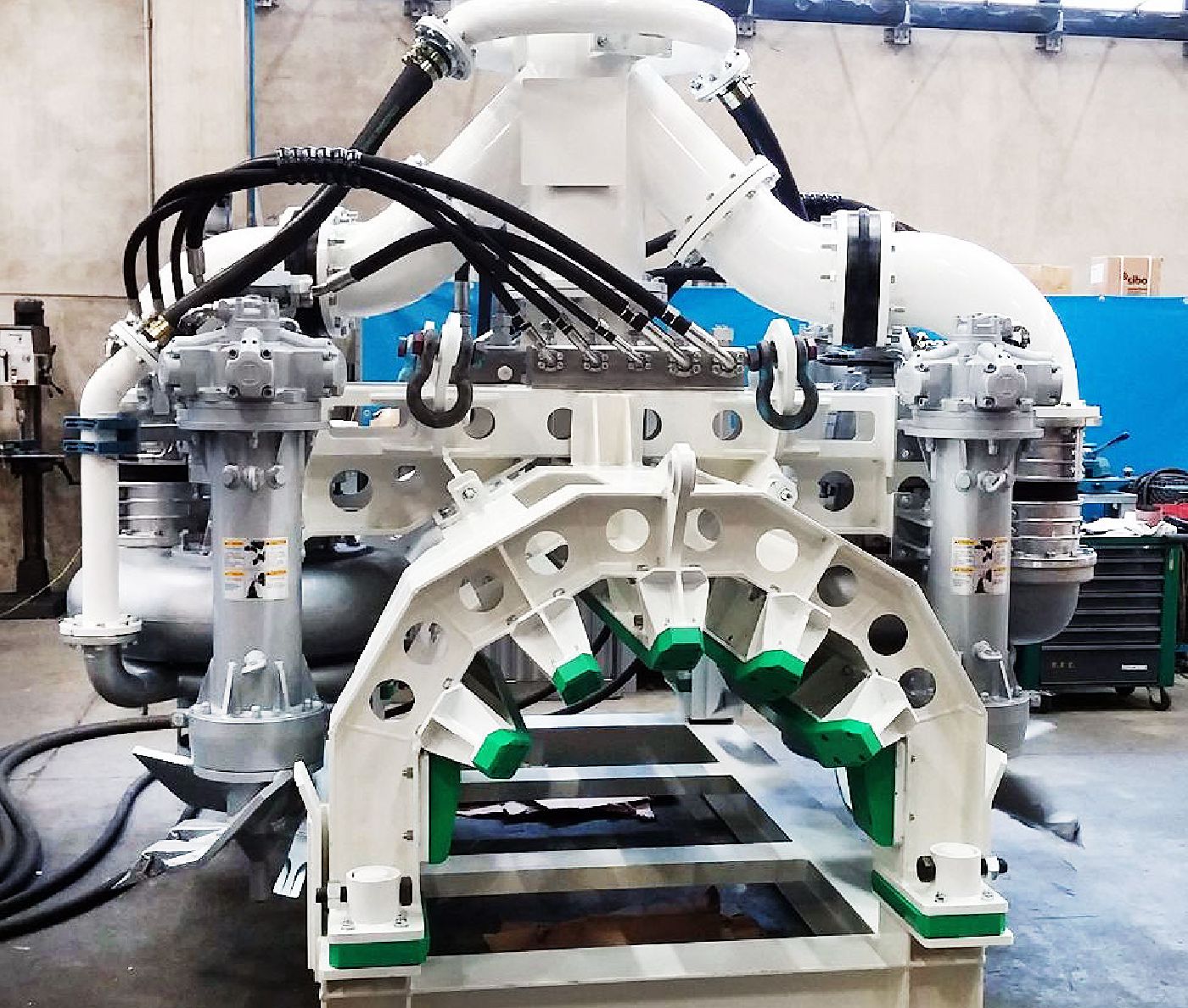 System DRAGFLOW TRENCH to specjalna konstrukcja składająca się z kilku pomp hydraulicznych przymocowanych do stalowej ramy z tarczą ochronną.